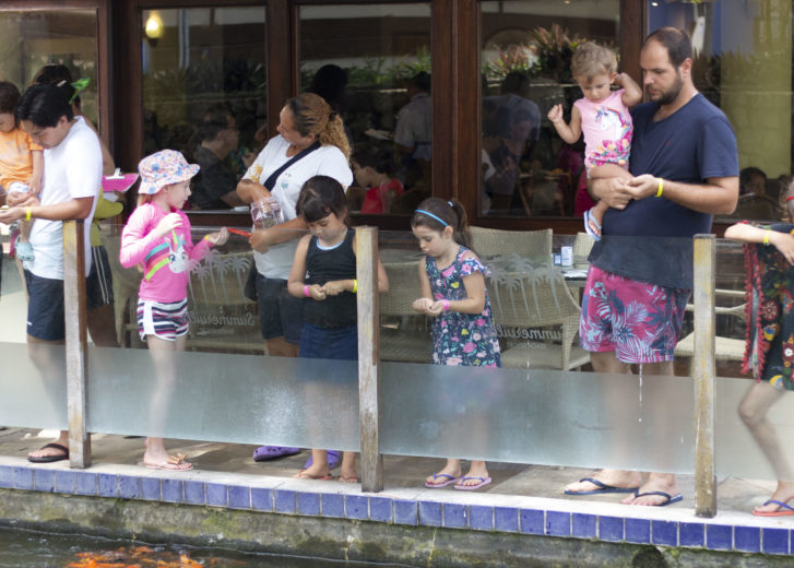 Children can feed the fish in the restaurant’s lake, while they learn a little about the importance of preserving the environment, love for animals and have fun interacting with the little fish.