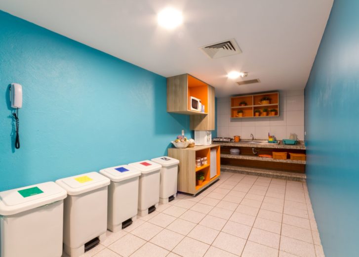 Copa do bebê disponível 24h. Tem facilidades como microondas, processador, fogão e ingredientes (frutas, leites etc) para que os pais possam preparar as refeições de seus bebês.